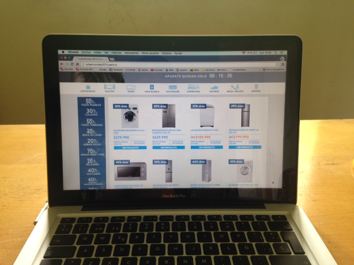 Este año, en cambio, yo figuraba anoche quedándome dormida con el computador prendido para ver qué tal se venían las ofertas. Específicamente, coticé pasajes de avión a un par de destinos que me interesaban y una lavadora que hace rato que me hace falta.